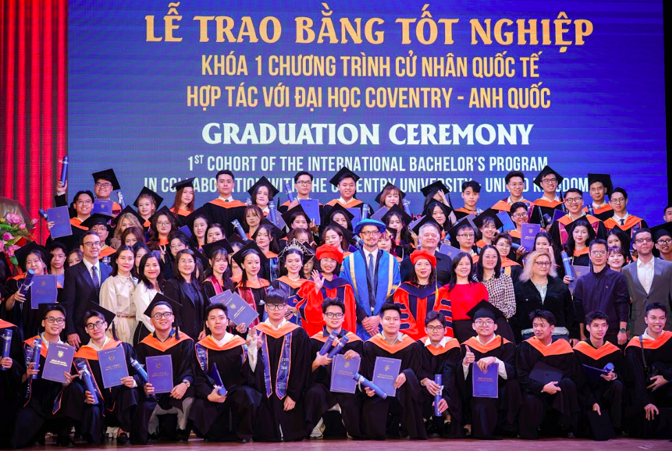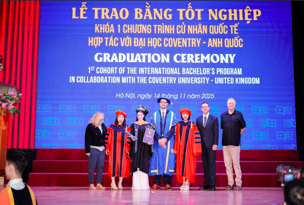 Lễ trao bằng tốt nghiệp chương trình Cử nhân Quốc tế liên kết giữa Học viện Ngân hàng và Đại học Coventry được tổ chức trang trọng với sự tham dự của lãnh đạo hai trường.