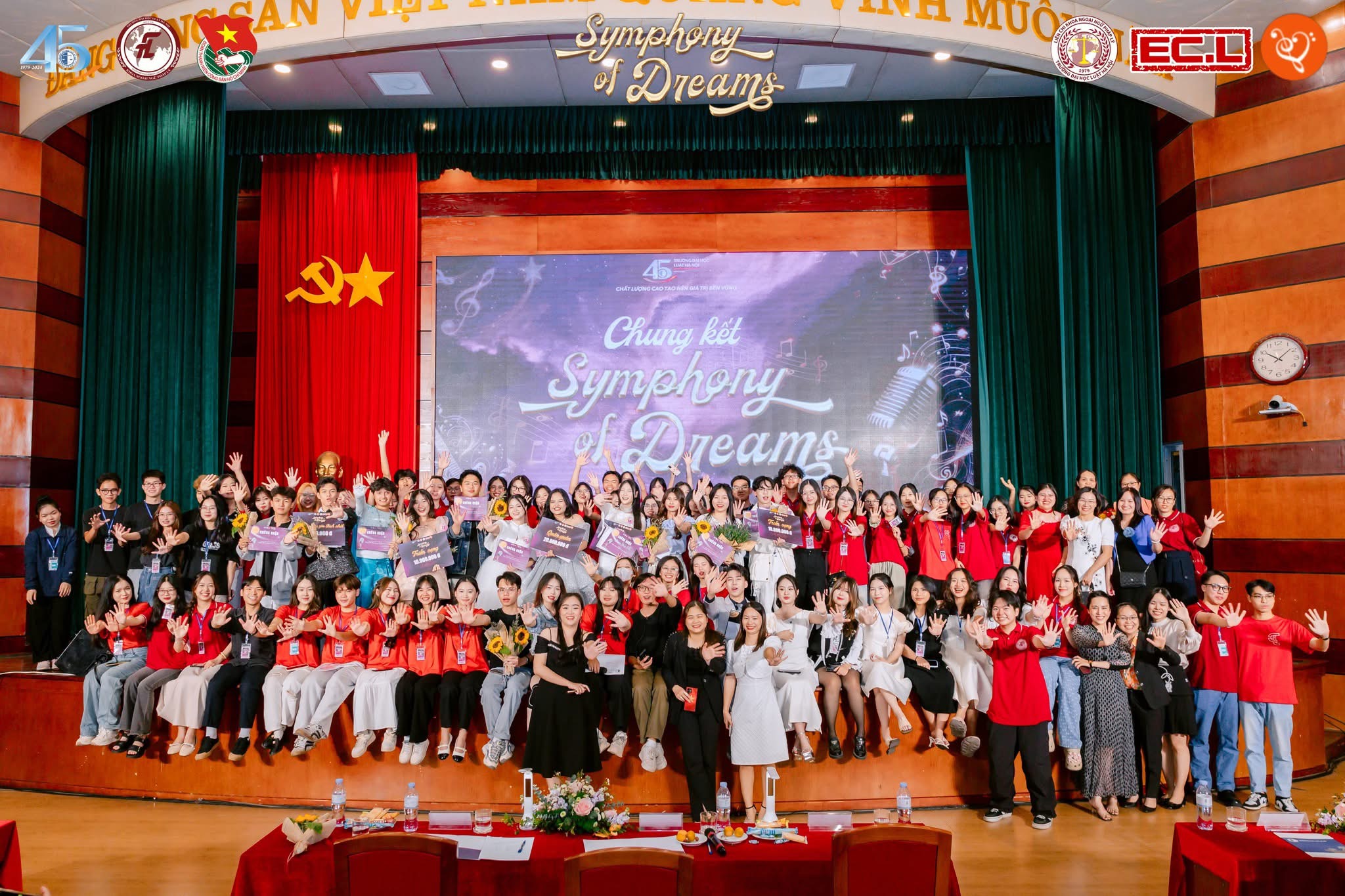 Thuỳ Trang (bạn nữ thứ 4 từ trái qua) cùng các đồng đội trong đêm Chung kết