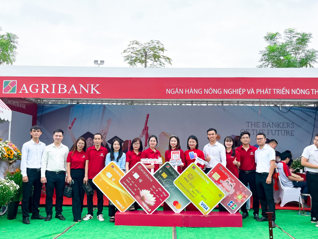 Gian hàng tuyển dụng của Ngân hàng Agribank thu hút đông đảo sinh viên ngay từ đầu chương trình.