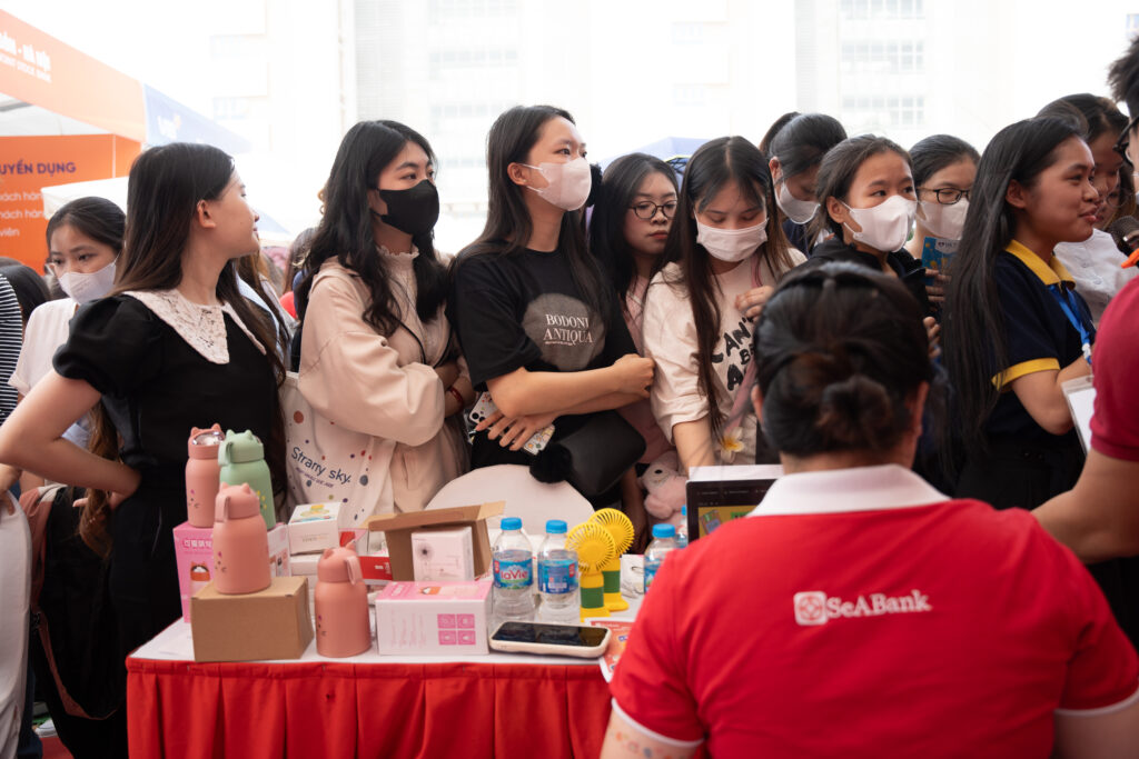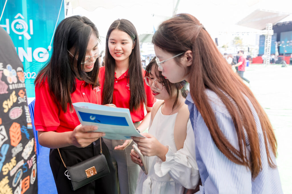 Sinh viên hào hứng trao đổi thông tin tuyển dụng, chuẩn bị cho hành trình khởi nghiệp nghề nghiệp tương lai.
