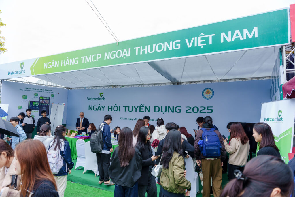 Đại diện Ngân hàng TMCP Ngoại thương Việt Nam (Vietcombank) trực tiếp tư vấn, chia sẻ kinh nghiệm và giải đáp thắc mắc về các cơ hội nghề nghiệp tại “Ngày hội Tuyển dụng 2025”