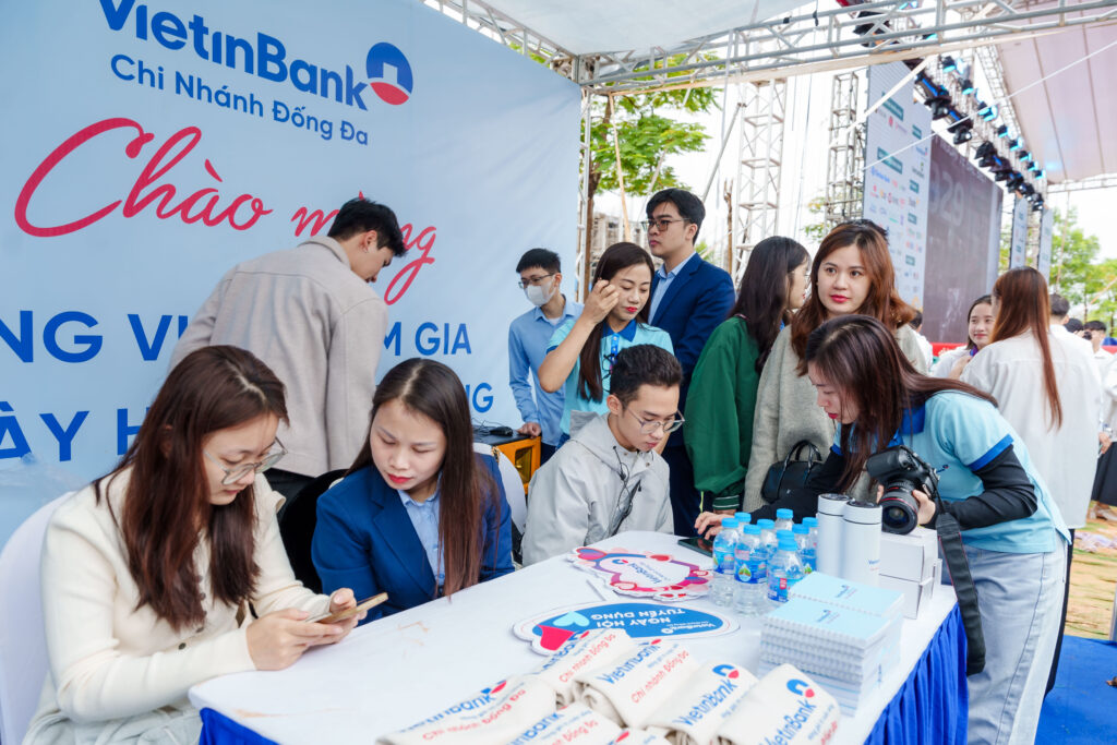 Sinh viên được các cán bộ Ngân hàng TMCP Công Thương Việt Nam (VietinBank) – Chi nhánh Đống Đa tư vấn trực tiếp và hướng dẫn chi tiết về các vị trí ứng tuyển.