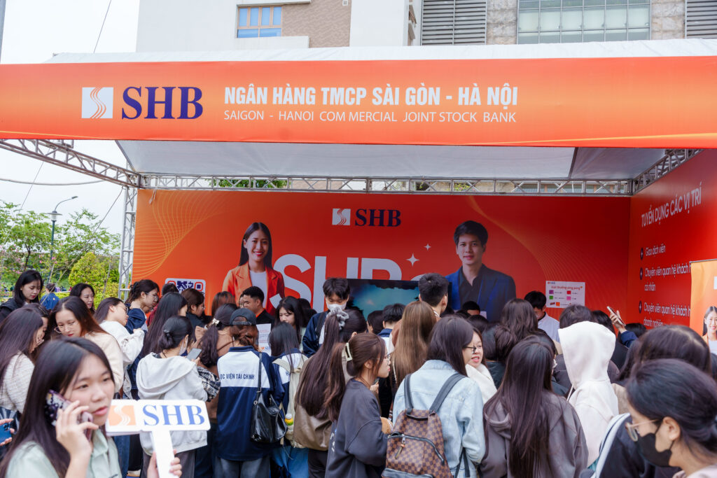 Gian hàng của Ngân hàng TMCP Sài Gòn – Hà Nội (SHB) luôn tấp nập sinh viên Học viện Tài chính đến tìm hiểu về các vị trí thực tập và cơ hội việc làm.