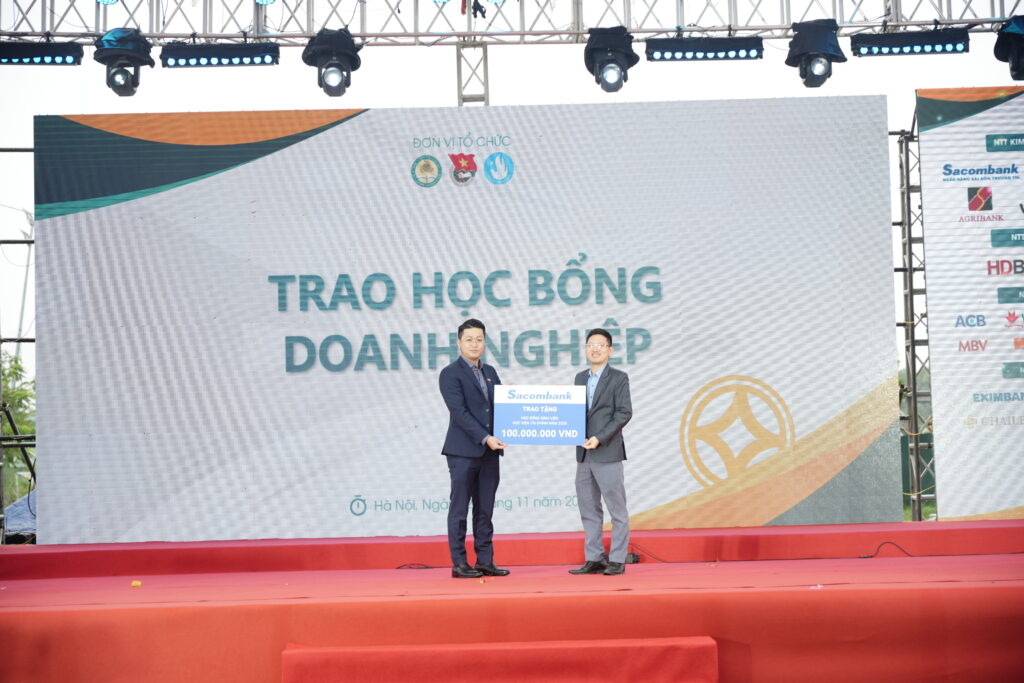 Đại diện Ngân hàng Sacombank trao học bổng trị giá 100 triệu đồng dành tặng sinh viên Học viện Tài chính, thể hiện sự quan tâm và đồng hành của doanh nghiệp với thế hệ trẻ.